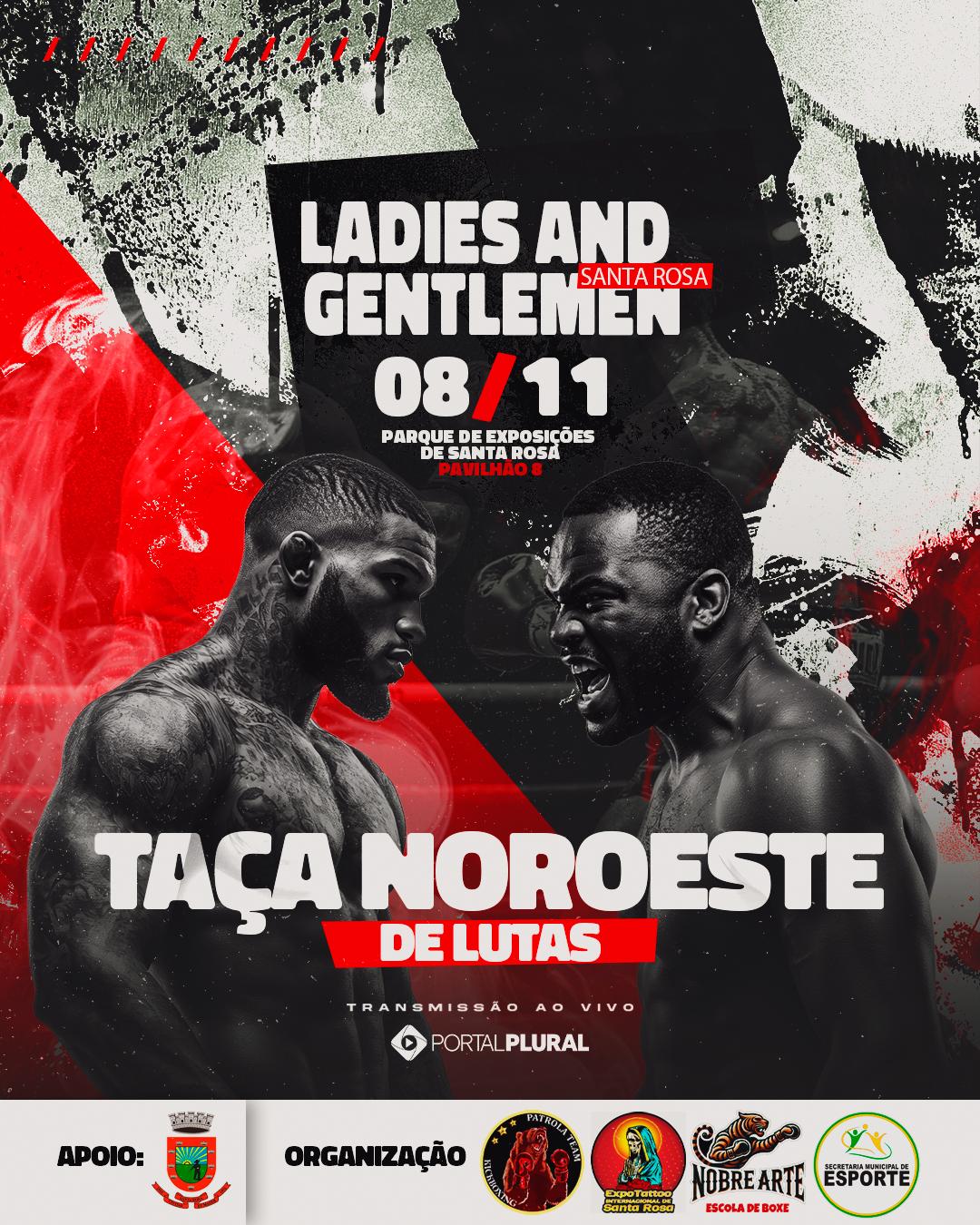novembro 8 @ 19:00 - 22:00 Taça noroeste de lutas Parque Municipal de Exposições Alfredo Leandro Carlson Avenida Benvenuto de Conti, 373, Santa Rosa, Rio Grande do Sul, Brazil