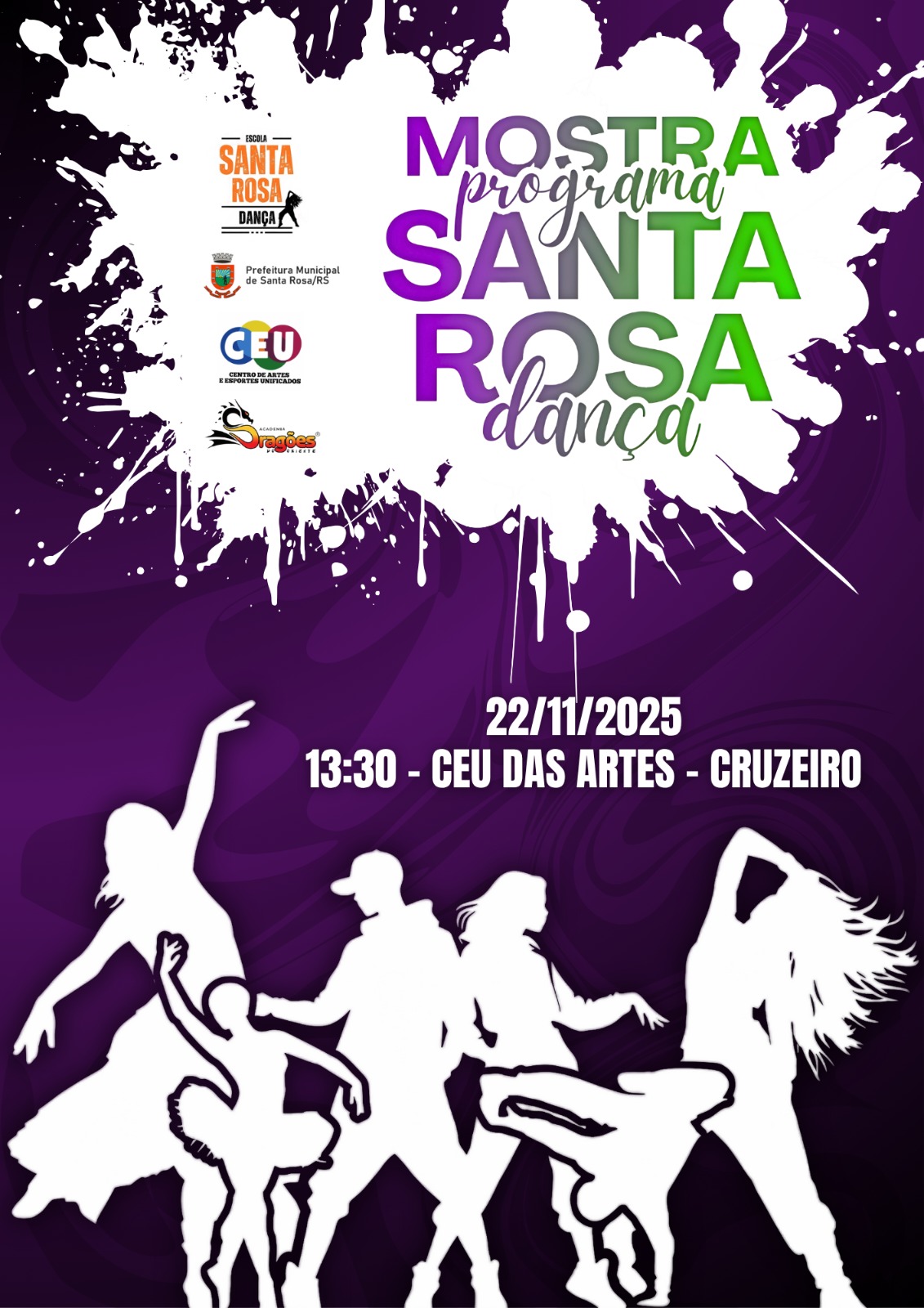 novembro 22 @ 13:30 - 17:00 Mostra programa SANTA ROSA dança CEU das Artes Rua São João, 30, Santa Rosa, Rio Grande do Sul, Brazil