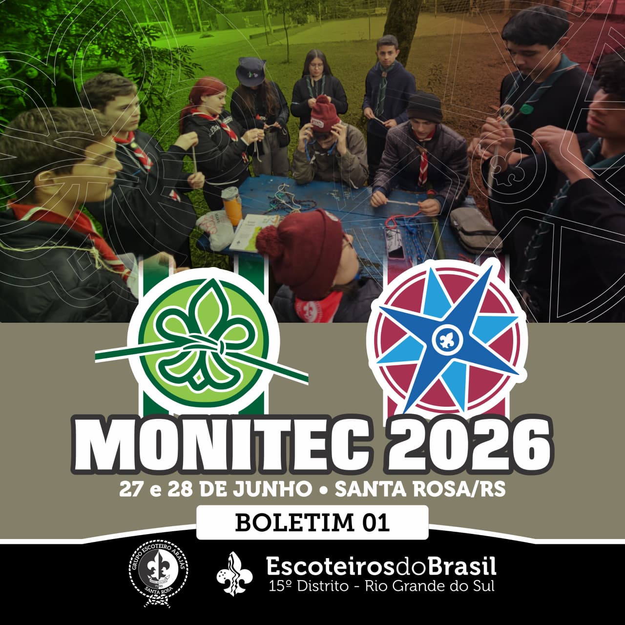 O MONITEC 2026 é uma atividade de capacitação de liderança (monitores e submonitores) e prospectos, dos ramos Escoteiro e Sênior, organizada pelo Grupo Escoteiro Arajás – 71/RS. O Encontro é uma oportunidade para capacitação em temas relevantes aos Ramos Escoteiro e Sênior, trocas de experiências e integração. A edição de 2026 ocorrerá nos dias 27 e 28 de junho, na Sociedade Esportiva e Recreativa Cisne em Santa Rosa/RS.